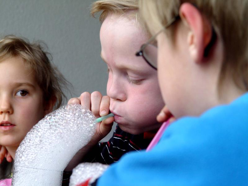 Das hupende Auto, der Schlag der Kirchturmuhr, das Klingen an der Tür: Bei dem Experiment geht es darum, welche Geräusche Kinder hören, wie sie diese zuordnen und welche Gefühle sie hervorrufen. Die Versuchsanordnungen mit spürbarem Alltagsbezug stammen von der Stiftung „Haus der kleinen Forscher“. Da blubbern Seifenblasen oder zerläuft Tinte auf Papier, und immer sind es die Kinder die ausprobieren und Antworten finden.